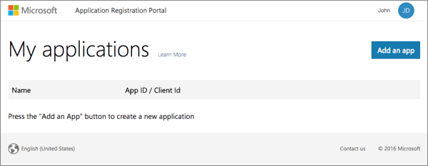 NOTE: If you have existing apps, there may be two Add an app buttons. Select the first.