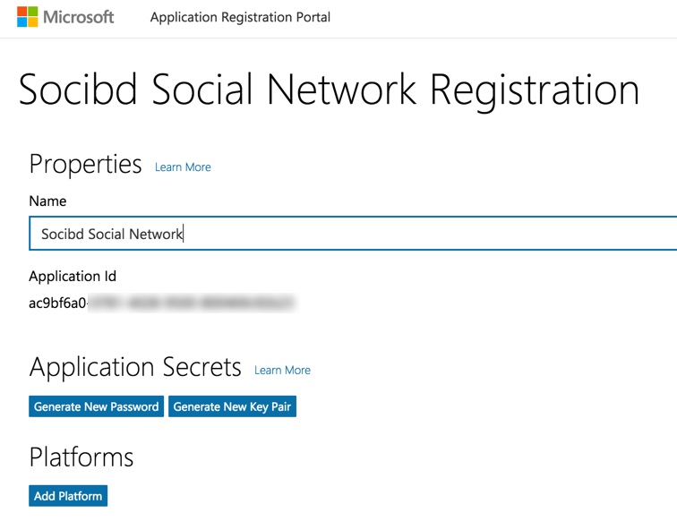 In Socibd admin > Members Management > Social Login, and paste Client Id and Client Secret, check "Enable Microsoft account", then click "Save" button.