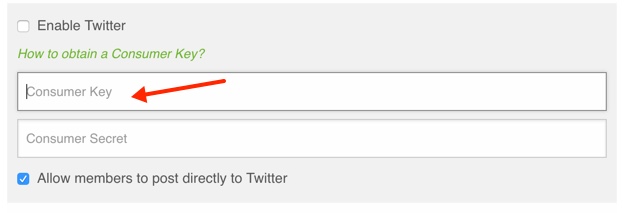 In Socibd admin > Members Management > Social Login, and paste Consumer Key and Consumer Secret, check "Enable Twitter", then click "Save" button.